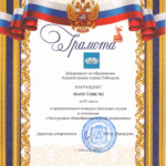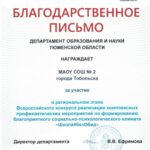 Благодарственное письмо за высокие результаты во Всероссийской олимпиаде школьников