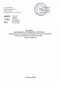 Правила внутреннего трудового распорядка МАОУ СОШ №2