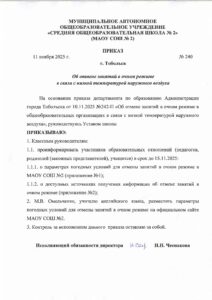 Приказ об отмене занятий в очном режиме в связи с низкой температурой воздуха