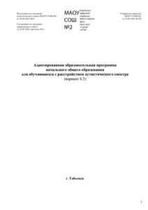 Адаптированная образовательная программа начального общего образования для обучающихся с расстройством аутистического спектра (вариант 8.2)