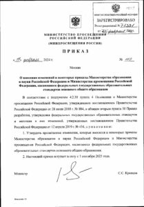 Приказ Министерства просвещения Российской Федерации № 110 от 19.02.2024 «О внесении изменений в некоторые приказы Министерства образования и науки Российской Федерации и Министерства просвещения Российской Федерации, касающиеся федеральных государственных образовательных стандартов основного общего образования»