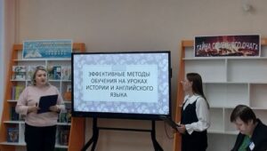 Наши педагоги Омельченко Мария Викторовна, учитель английского языка и Криванкова Альфия Рамильевна, учитель истории и обществознания, презентовали свой опыт работы по профессиональному взаимодействию «Эффективные методы обучения на уроках истории и обществознания»