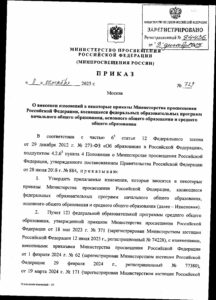 Приказ Министерства просвещения Российской Федерации от 08.10.2025 № 729 «О внесении изменений в некоторые приказы Министерства просвещения Российской Федерации, касающиеся федеральных образовательных программ начального общего образования, основного общего образования и среднего общего образования» (Зарегистрирован 03.12.2025 № 84436)