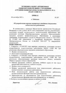 Приказ №207 «Об упорядочении перечня внутренних отчетных документов педагогических работников»