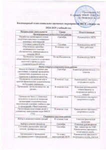 Календарный план социально-значимых мероприятий ШСК Лидер