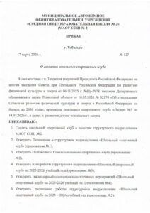 Приказ о создании ШСК СОШ2 Тобольск